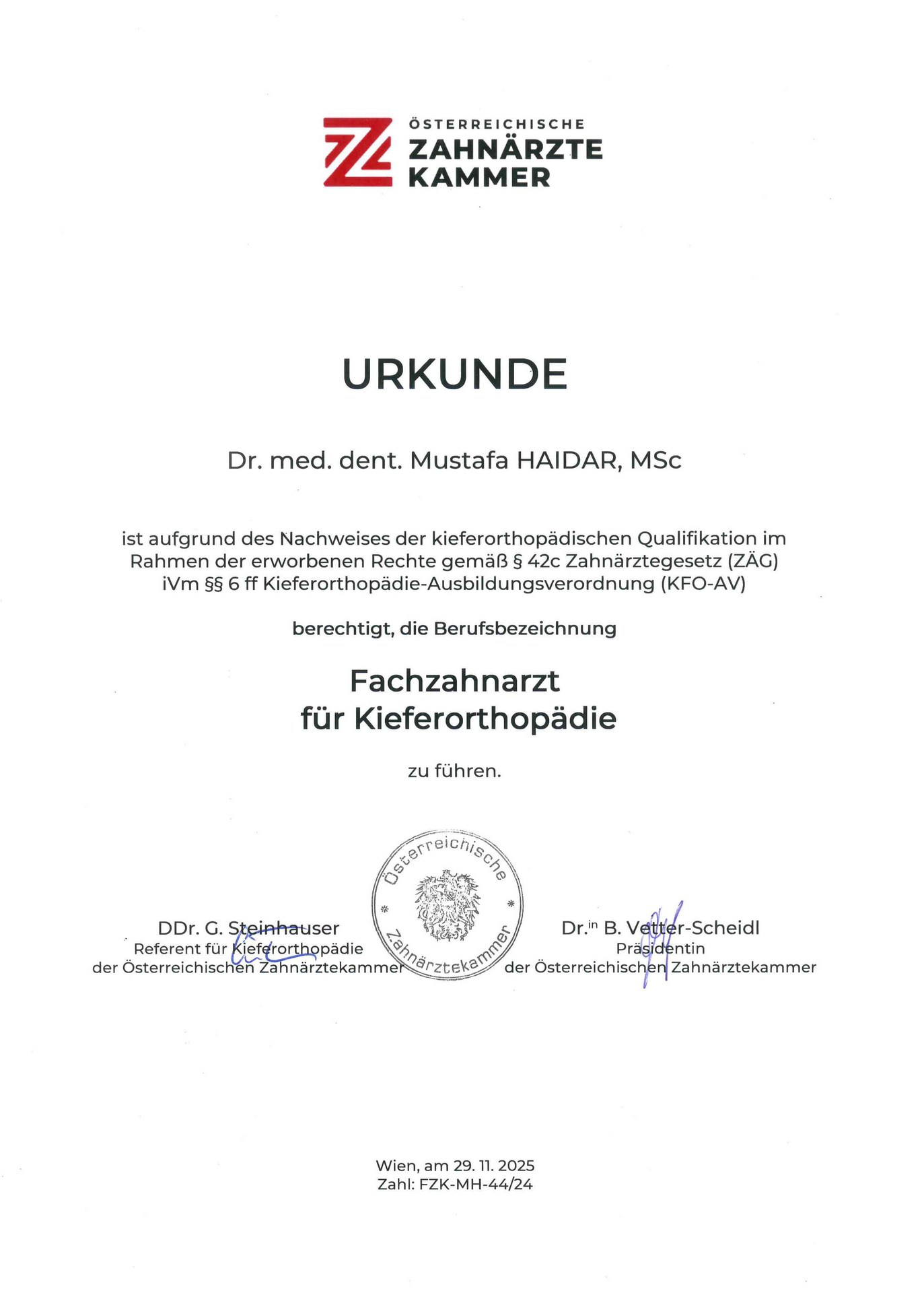 . November 2025 Fachzahnarzt für Kieferorthopädie